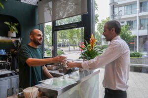 Gracias a sus manos verdes -que siguen arreglando y embelleciendo jardines- conoció a quienes actualmente son sus socios en el café: una pareja de emprendedores gastronómicos y Juan Politi, el CEO del hotel Almarena Puerto Retiro, affiliated by Meliá ubicado en el Distrito Quartier. Tres socios, tres patas importantes que se dividen el trabajo según su sapiencia y experiencia.