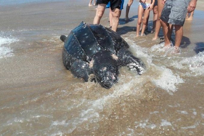 Se trata de la especie laúd, la más grande de las tortugas, incluida en la categoría vulnerable de animales amenazados por la Unión Mundial para la Naturaleza.