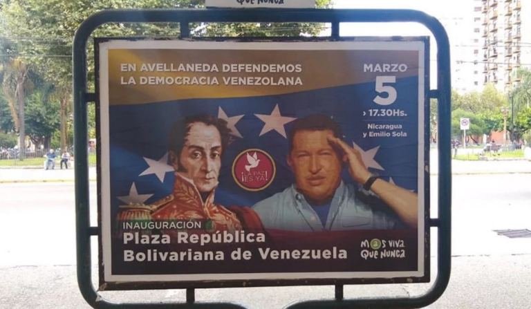 Se trata de Jorge Ferraresi, quien empapeló la municipalidad con afiches en defensa de "la democracia venezolana".
