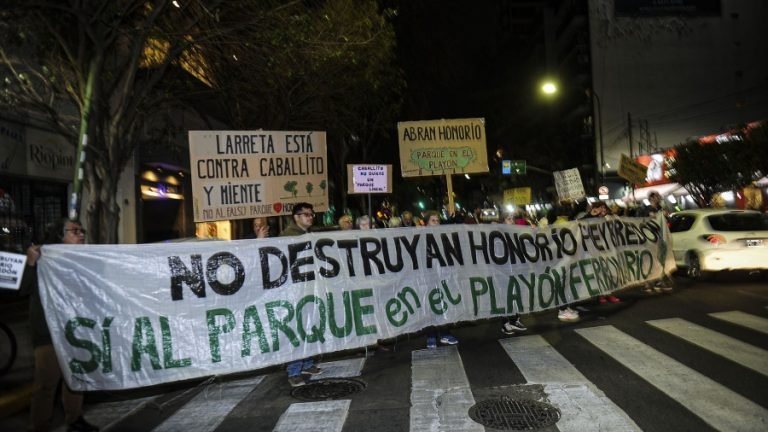 Los manifestantes se congregaron poco antes de las 19 frente al monumento del Cid Campeador, donde un grupo cortó parcialmente la circulación de vehículos sobre la avenida Gaona, para desplegar una bandera con la leyenda "No destruyan Honorio Pueyrredón".