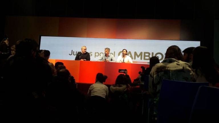 Los jefes de campaña del Frente Juntos por el Cambio, Marcos Peña, Federico Salvai y Eduardo Macchiavelli brindaron una conferencia de prensa con las primeras impresiones de la votación de las elecciones Primarias, Abiertas, Simultáneas y Obligatorias (PASO).