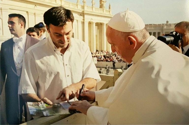 El Sumo Pontífice respaldó la lucha tras firmar una pancarta al científico y activista ambiental Esteban Servat.