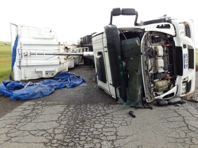 Fue a la altura del kilómetro 332 de la ruta 3. Se encontraban detenidos a la espera de cargar en dos canteras de la zona.