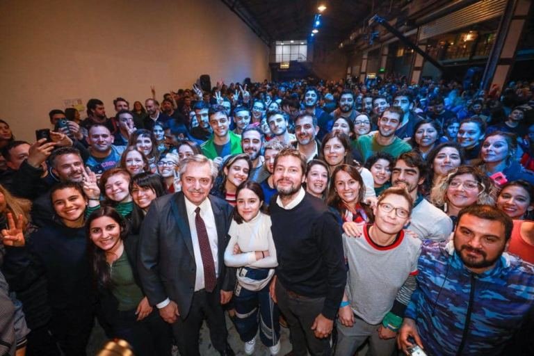 El candidato a presidente del Frente de Todos encabezó un acto con el aspirante a jefe de Gobierno porteño Matías Lammens, ante más de 1500 personas.