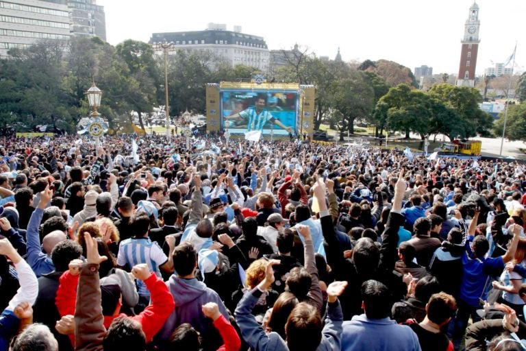 El Gobierno instaló pantallas para que los vecinos puedan disfrutar los 64 partidos en Plaza San Martín y parque Centenario.