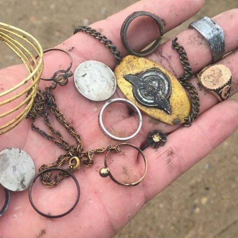 Un grupo de personas rastrilla en agua y tierra para dar con tesoros de otros tiempos.