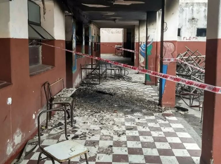 Un grupo de adolescente prendió fuego el establecimiento. El hecho provocó daños totales en la preceptoría y afectó a diez de las 15 aulas.